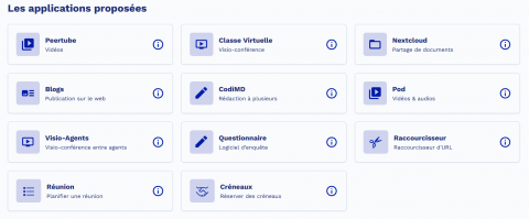 Apps.education.fr est une plateforme développée au sein de la Direction du Numérique pour l'Education, qui propose les outils essentiels du quotidien à l'ensemble des agents de l'Éducation nationale. Ce projet offre aux utilisateurs une plateforme de Services Numériques Partagés, à l'échelle nationale à laquelle l'agent conserve son accès même en cas de changement d'académie.